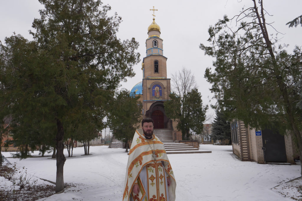 Afuera retumban las detonaciones, pero dentro, un puñado de feligreses canta en la oscuridad sosteniendo unas pequeñas velas que dejan caer su cera ardiente sobre los sabañones que el frío ha producido en sus manos. “En los meses de ocupación del año pasado los rusos me dejaron en paz. Solo me pidieron que fuera a firmar a una comisaría una vez a la semana para que supieran dónde estaba –recuerda el sacerdote una vez finalizada la ceremonia–. Sin embargo, esta vez no me quedaré”. Señala convencido. “Sé que cuando vengan, me matarán. La Iglesia rusa y ortodoxa ya no se llevan bien”.