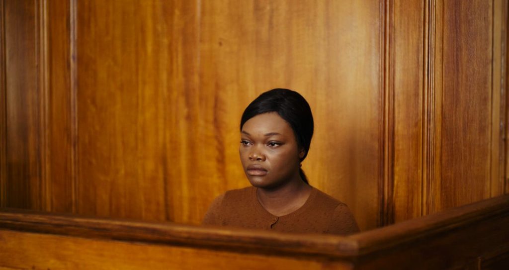 La voz y el rostro de la acusada (interpretada magistralmente por Guslagie Malanda) nos va guiando por espacios tenebrosos, usando un vocabulario culto y una fluidez en el discurso que rompieron los esquemas de quienes la escucharon entonces y quienes lo hacen ahora en el cine. Son sólo palabras, pero tan afiladas y precisas (tan en la línea de Marguerite Duras, explícito germen discursivo del filme), que atornillan al público a la butaca y lo mantienen en vilo como en una película de terror.
