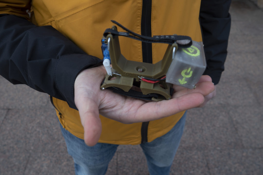 Alexey Bulava muestra el complemento para los drones que fabrica con impresoras 3D ante la Puerta dorada de Kiev. P. S.