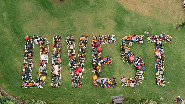 Activistas y voluntarios de 350.org en un acto en Australia para pedir la retirada de inversiones en el sector de los combustibles fósiles. Foto: 350.org / CC BY-NC-SA 2.0.