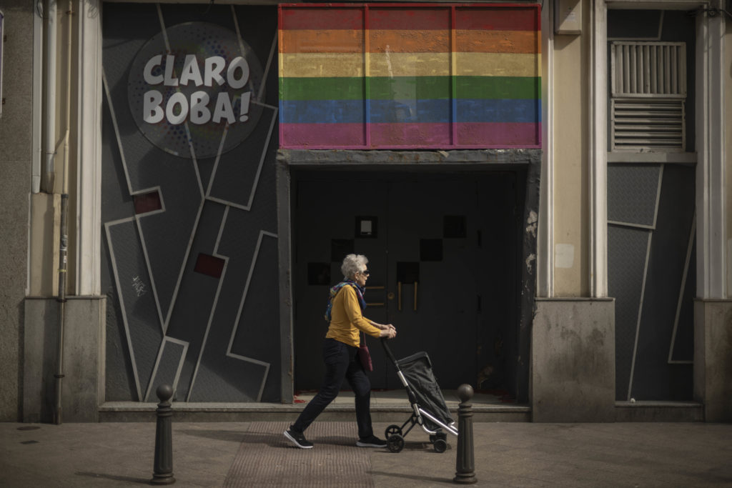 Una mujer pasea por A Coruña junto a un pub LGTBIQ+. BRAIS LORENZO