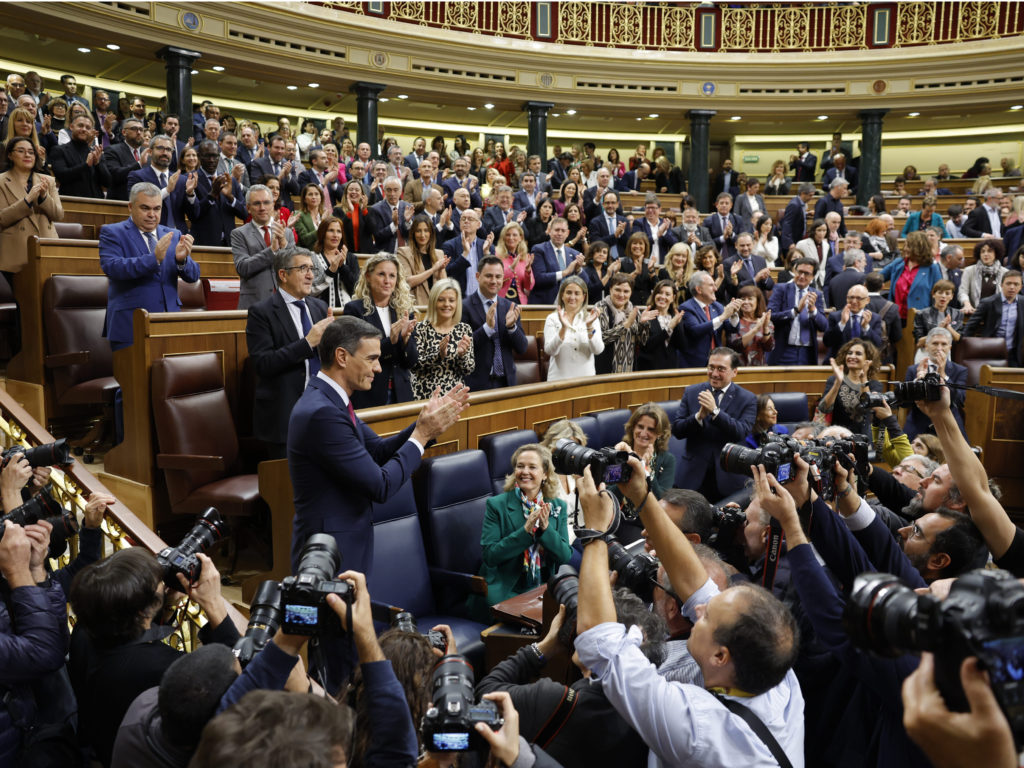El candidato ha estado arropado principalmente por su partido, si bien el Gobierno en funciones al completo ha aplaudido su intervención, incluidas Ione Belarra e Irene Montero, cuyo partido ha anunciado hoy que las bases de Podemos avalan el voto positivo de la formación a la investidura del candidato Sánchez.