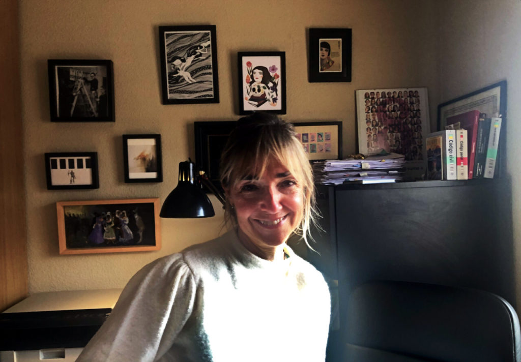 Sus paredes están llenas de cuadros que reivindican el feminismo, de mujeres, de mensajes. Y cuenta, a modo de anécdota, cómo los pequeños éxitos hacen que parezcan cosas excepcionales: “Una de mis compañeras en esta lucha me dijo que iban a reservar unos sitios donde hacemos las guardias para aparcar los coches. Se instó al Ayuntamiento de Sevilla a que se pusiera en la señal ‘prohibido aparcar excepto abogacía de guardia’. Pero no, en la señal se puso ‘excepto abogados de guardia’. Aparqué ahí con un coraje… La sorpresa fue que a los pocos días, cuando volví a pasar en coche por allí, vi que lo habían cambiado. ¡Y hasta fotos le hice!”.