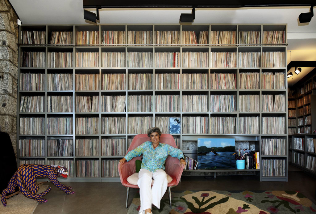 Alejandra Fierro, también conocida como Gladys Palmera, rodeada de algunos de sus discos.