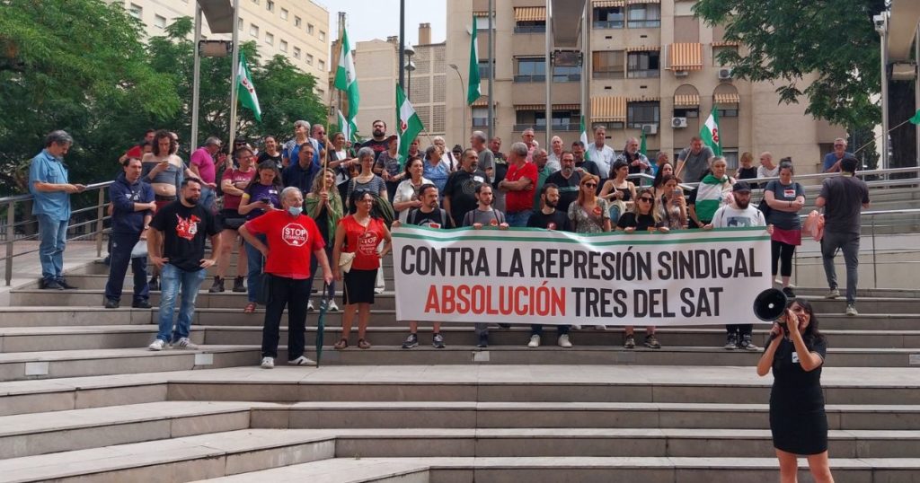El Juzgado de lo Penal nº 3 de Granada ha absuelto a Vanesa, María José y Néstor, las militantes del Sindicato Andaluz de Trabajadores/as (SAT) para las que la Junta de Andalucía pedía cinco años de prisión (la Fiscalía solicitaba un año y tres meses) por participar en una acción sindical. Se las acusaba de delitos como desórdenes públicos, amenazas y coacciones.