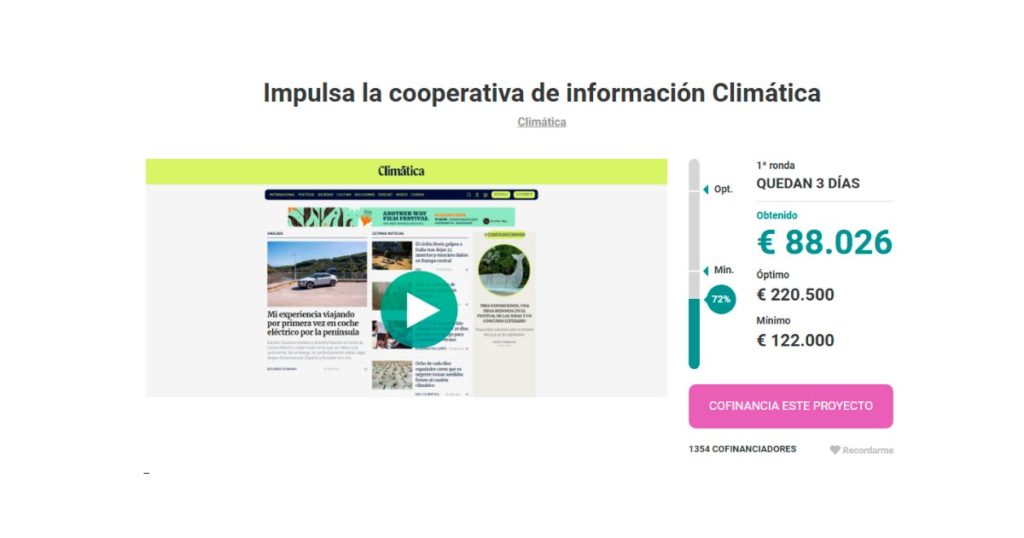 A las 9 de la mañana del lunes 4 de noviembre, la campaña de recaudación de fondos de Climática afronta el último día de la primera ronda en Goteo. Este medio de comunicación especializado en la crisis climática está a esa hora a 19.000 euros de lograr el objetivo mínimo imprescindible para no perder lo ya obtenido..