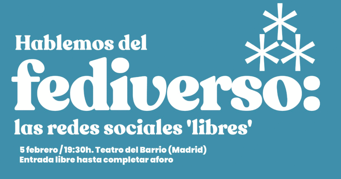 El encuentro tendrá lugar el 5 de febrero a las 19:30h en el Teatro de Barrio (Madrid). Allí conversaremos sobre las redes sociales que forman parte del fediverso y su crecimiento como alternativa a X o Meta (Facebook o Instagram).