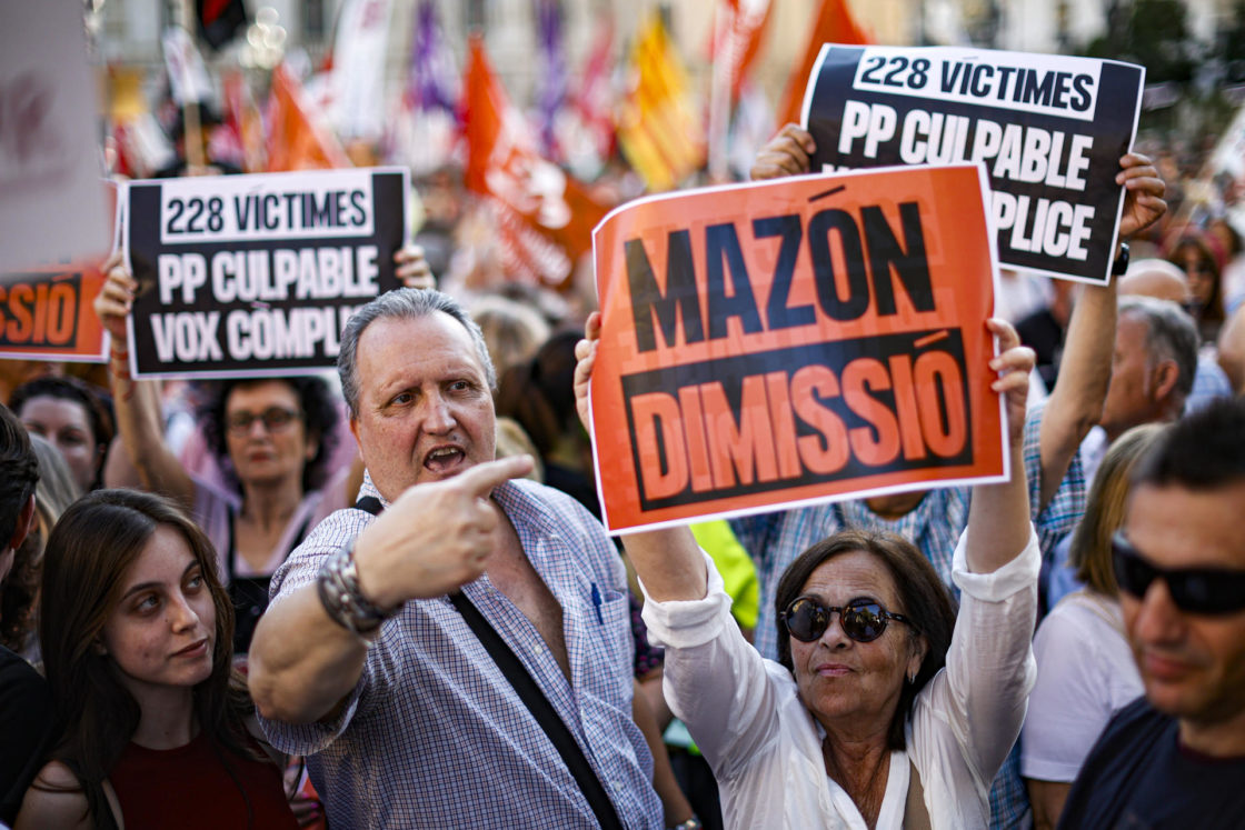 La séptima manifestación para pedir la dimisión del presidente de la Generalitat, Carlos Mazón, por su gestión de la dana. EFE/Biel Aliño