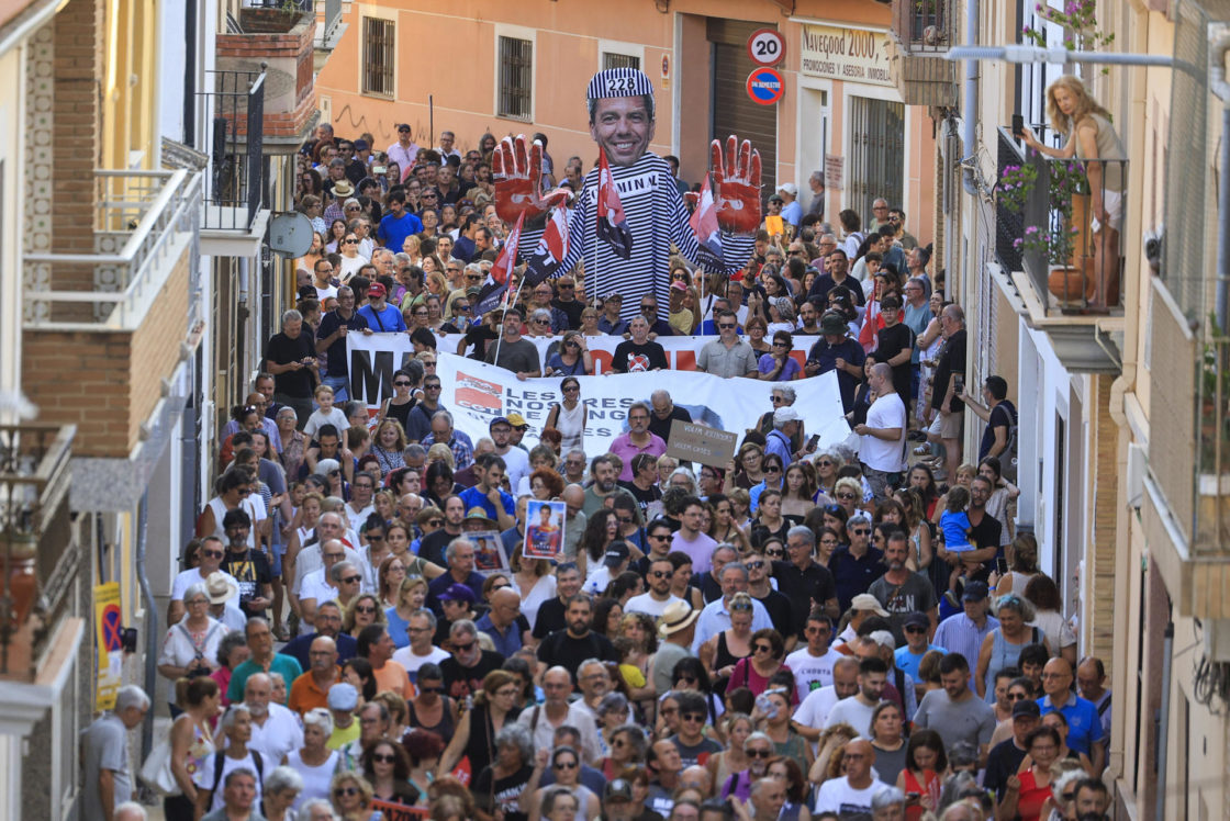 La manifestación, precedida por la música de medio centenar de dolçainers i tabaleters (dulzaineros y tamborileros) que han tocado La processó de la memòria (La procesión de la memoria), ha recorrido las calles de Catarroja desde el parque hasta la plaza de la Llotgeta entre gritos de ‘Mazón dimisión, Mazón a la prisión’, ‘el president a Picassent’ –por la cárcel valenciana– o ‘no son muertos, son asesinados’.