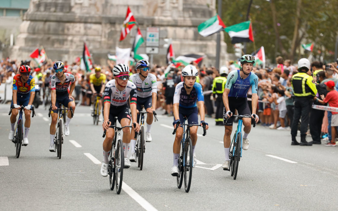 El recorrido debía transcurrir dando varias vueltas en un circuito urbano por la capital vizcaína, pero no fue posible. Las octavillas volaban al paso de los corredores y las banderas palestinas inundaban el recorrido, rozando a los ciclistas. Tras vivir momentos de tensión máxima, la organización decidió suspender la etapa.