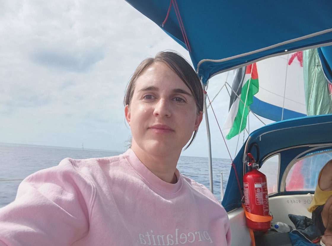 La diputada española en la Asamblea de Madrid Jimena González, desde el 'Soul of my soul', integrante de la Flotilla de la Libertad-Thousand Madleens. EFE/Jimena González