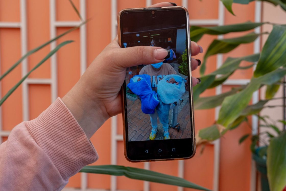 Elena*, madre subrogada en Colombia, muestra una foto con los gemelos que gestó. MARINA SARDIÑA