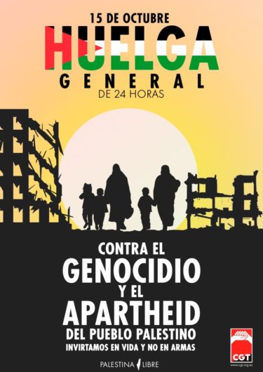 En un comunicado, CGT considera que tanto la comunidad internacional como el Estado español vienen siendo cómplices del genocidio en Palestina «a través del mantenimiento de relaciones diplomáticas y comerciales» con Israel. «Desde octubre de 2023, apenas ha cambiado algo en este sentido, y las leyes o manifestaciones que se han anunciado por parte del gobierno de PSOE-Sumar han sido más simbólicas que otra cosa», denuncia.