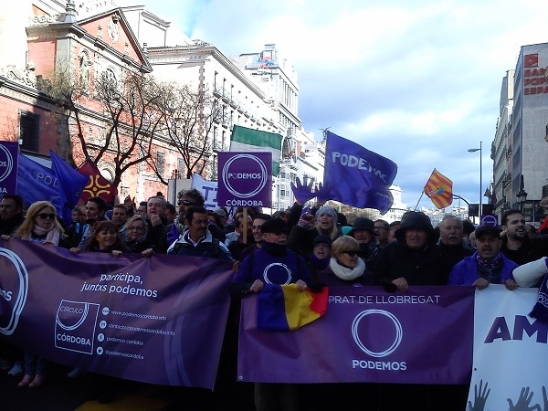 Varios cientos de miles de personas tomaron este sábado las calles de Madrid convocados por Podemos en la denominada Marcha del Cambio. Manifestantes venidos de toda España transitaron por el centro de la ciudad hasta llegar a la Puerta del Sol. Lea aquí la crónica.